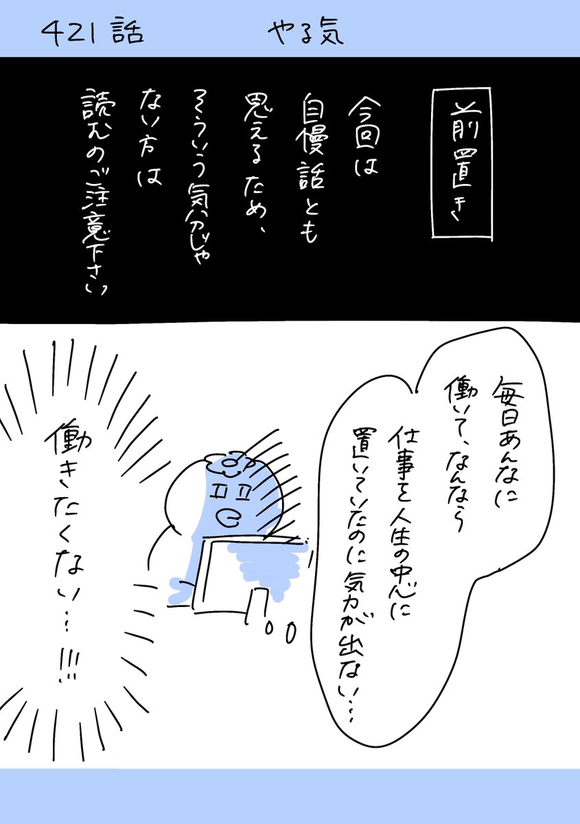 2025年10月27日 ■ 220人の会社に5年居て160人辞めた話 421 〜やる気〜 ▼前回の話しはこちら▼ ▼次の話しはこちら▼ <🥒業務連絡🥒>🌟《✨発売中✨》🌟「退職代行モームリ」さん取材レポ漫画!!↓ ↓ 📚 電子書籍派はこちら! 🥒LINEマンガでゆるぶら🥒試し読みもあるのでぜひ要チェック‼️ ▶ ゆるブラ試し読みする 書店で購入するとオリジナルステッカーが貰える!! ↓ ↓ 🥒㊗️Amazonでも㊗️🥒↓↓🥒㊗️楽天BOOKでも㊗️🥒↓↓まいどよろしく!!🥒 お知らせ 》》》X(旧ツイッター)で更新しているゆるブラ最新話にライブドアブログの更新が追いついたので今後は最新話の更新と合わせます。そのためブログも基本週1、2更新になるよ☺️<🥒本編はここからスタート🥒>最新話はXにて更新中!(先読みしたい方はぜひフォローしてね) ▼入社4年目はここからスタート▼ ▼入社3年目まとめ▼▼入社2年目まとめ▼ ▼入社1年目まとめ▼▼初めましての方▼🥒読者登録はこちら🥒
